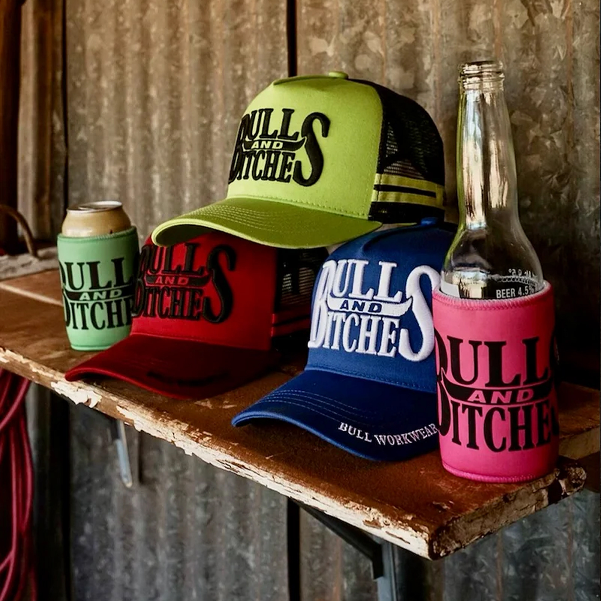 Branding used on hats, coozies, shirts, and more! www.bullworkwear.com
