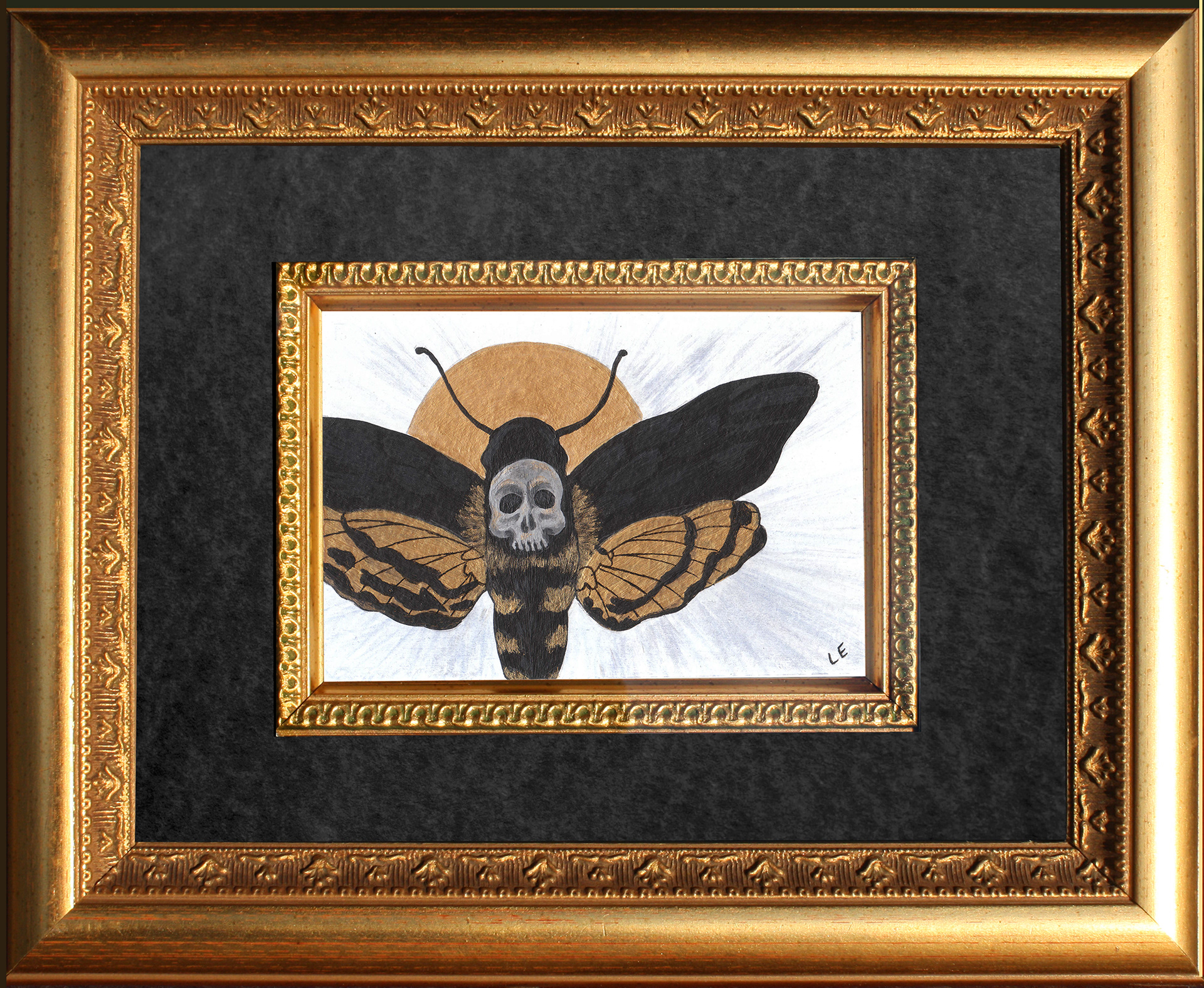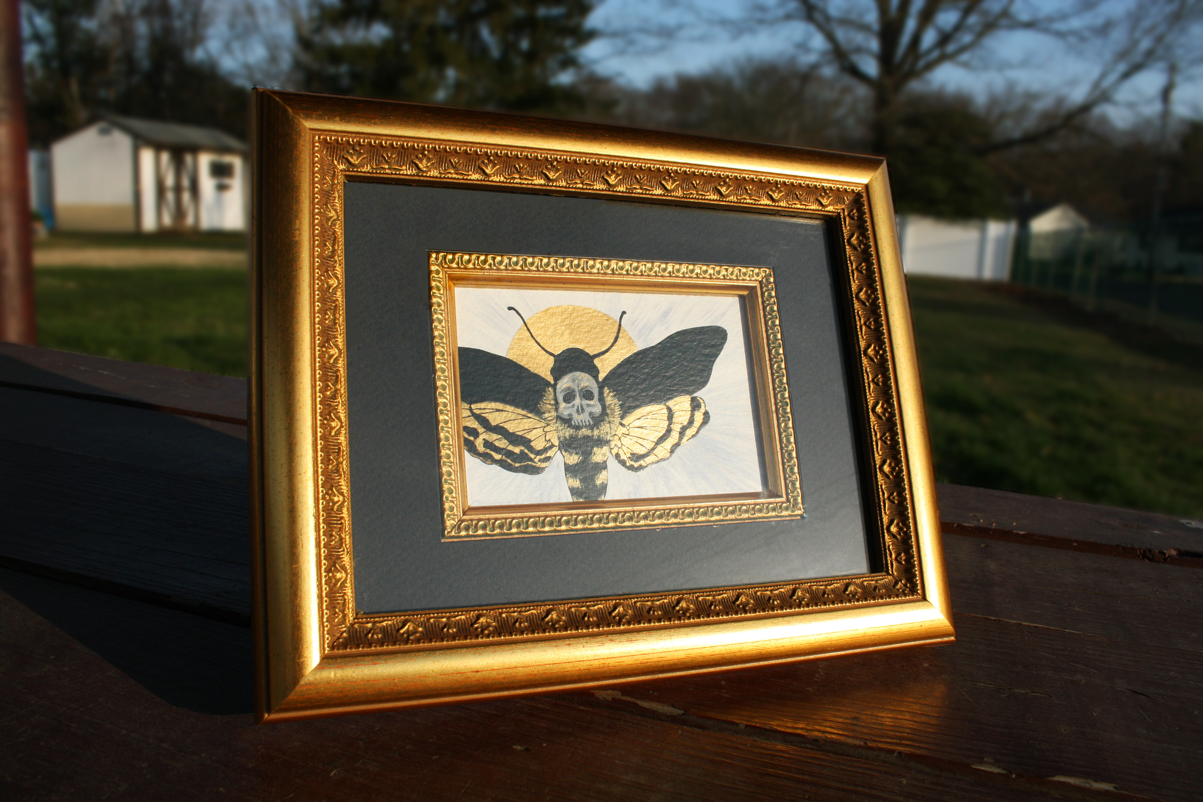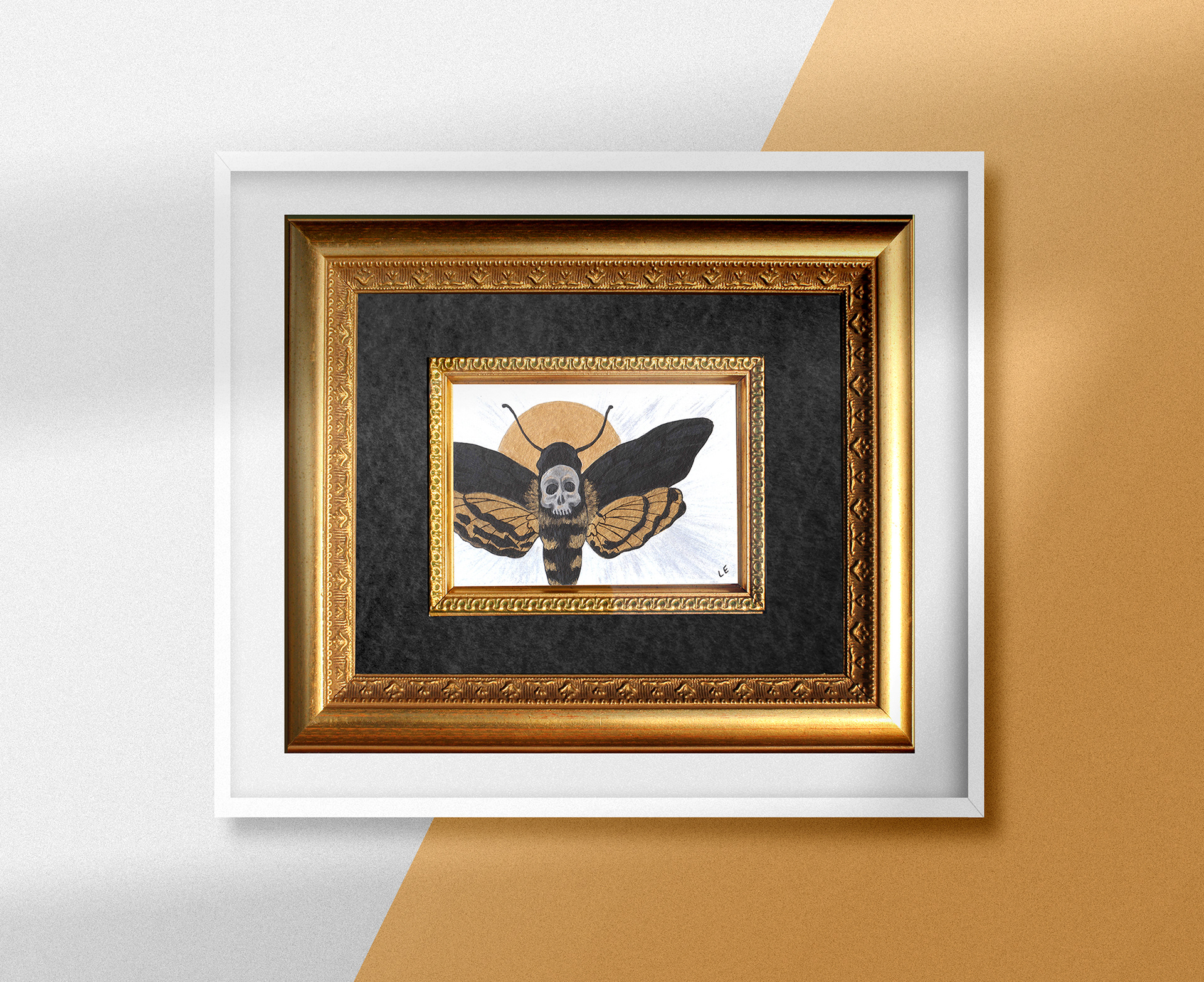 Watercolor painting of a Death Head Moth with Gold Metallic Details
