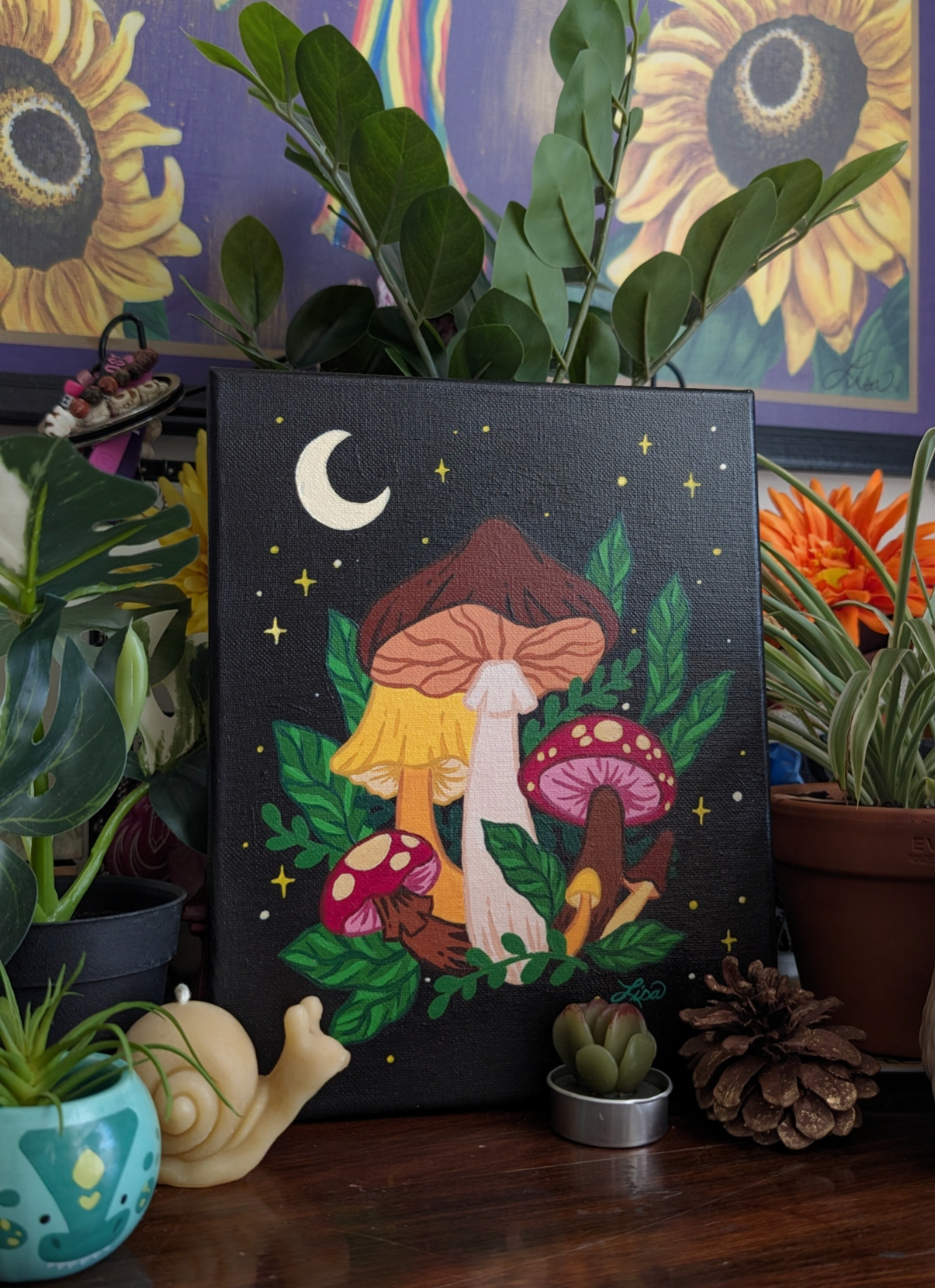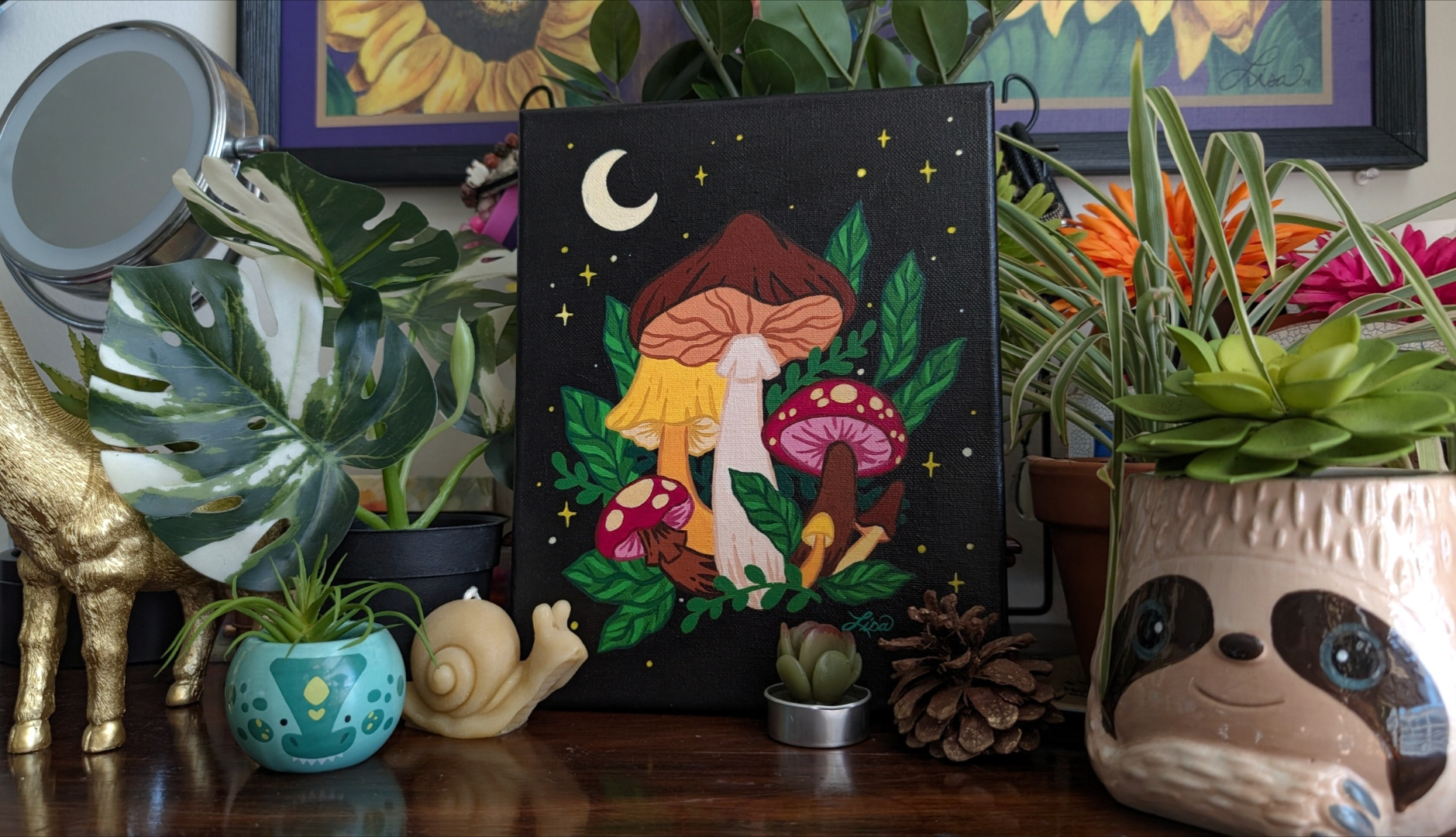 8"x10" Acrylic painting, inspiration for a 4"x4" live painting done at a local community park, Lot 323!